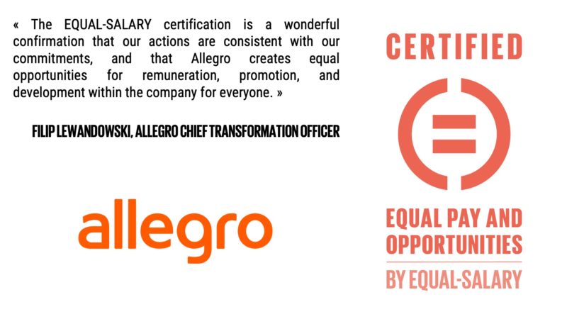 “For over a quarter of a century, Allegro has been setting standards for online shopping. Our ambition is to become the favorite online shopping destination not only in Poland but also in the region. This cannot be achieved without simultaneously being a good and fair workplace. The EQUAL-SALARY certification is a wonderful confirmation that our actions – also in this area – are consistent with our commitments, and that Allegro creates equal opportunities for remuneration, promotion, and development within the company for everyone,” added Filip Lewandowski, Chief Transformation Officer at Allegro.