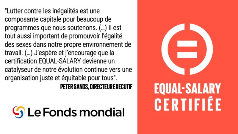 La Fondation EQUAL-SALARY est heureuse d’annoncer que Le Fonds mondial de lutte contre le SIDA, la tuberculose et le paludisme a obtenu la certification EQUAL-SALARY. Après avoir passé avec succès l’analyse statistique de ses salaires, Le Fonds Mondial s’est soumis à l’audit interne confié à PwC et a prouvé qu’il pratiquait l’égalité salariale entre les femmes et les hommes.