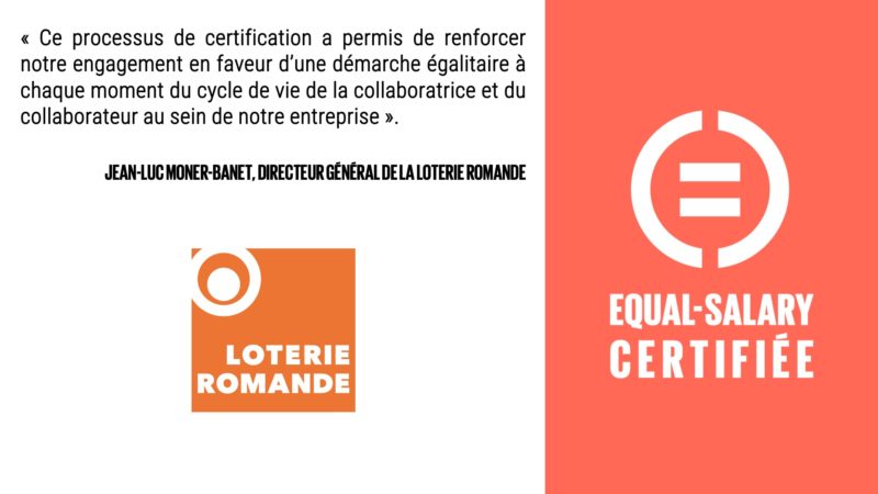 « Ce processus de certification a permis de renforcer notre engagement en faveur d’une démarche égalitaire à chaque moment du cycle de vie de la collaboratrice et du collaborateur au sein de notre entreprise » ajoute Jean-Luc Moner-Banet, Directeur général de la Loterie Romande.