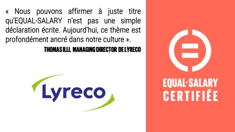 Vevey / Zurich, Avril 27, 2022 – La Fondation EQUAL-SALARY est heureuse d’annoncer que Lyreco Switzerland AG a obtenu pour la troisième fois consécutive la certification EQUAL-SALARY, synonyme d’excellence en matière d’égalité salariale pour l’ensemble de ses collaborateur.rice.s en Suisse. Après avoir passé avec succès l’analyse statistique de ses salaires, Lyreco s’est soumise à l’audit interne confié à PwC et a prouvé qu’elle pratiquait l’égalité salariale entre les femmes et les hommes. La certification EQUAL-SALARY est valable 3 ans, durant lesquels l’organisation concernée doit se soumettre à des audits de surveillance. Passé le délai de 3 ans, l’entreprise certifiée doit reconduire l’analyse salariale et un audit complet.