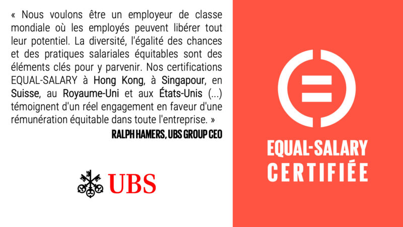 « Nous voulons être un employeur de classe mondiale où les employés peuvent libérer tout leur potentiel. La diversité, l’égalité des chances et des pratiques salariales équitables sont des éléments clés pour y parvenir. Nos certifications EQUAL-SALARY à Hong Kong, à Singapour, en Suisse, au Royaume-Uni et aux États-Unis représentent plus des deux tiers de nos employés et témoignent d’un réel engagement en faveur d’une rémunération équitable dans toute l’entreprise », souligne Ralph Hamers, CEO de UBS Group.