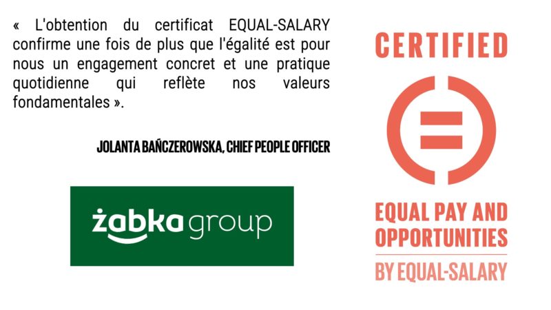Vevey / Poznan, 14 octobre 2025 – La Fondation EQUAL-SALARY est heureuse d’annoncer que Żabka Group a obtenu la certification Equal Pay and Opportunities, by EQUAL-SALARY, synonyme d’excellence en matière d’égalité pour tou.te.s les employé.e.s de Żabka Polska et les sociétés du groupe Żabka en Pologne. Après avoir passé avec succès l’analyse statistique de ses salaires, Żabka Group s’est soumis à l’audit interne confié à PwC et a prouvé qu’elle pratiquait l’égalité salariale et l’égalité des chances entre les femmes et les hommes.