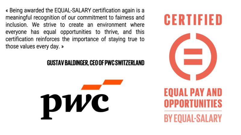 Vevey / Zurich, 15 January 2026 – The EQUAL-SALARY Foundation is pleased to announce that PricewaterhouseCoopers AG has obtained the Equal Pay and Opportunities certification, by EQUAL-SALARY certification, a symbol of excellence in terms of equality for all employees of PwC in Switzerland. After successfully passing the statistical analysis of its salaries, PwC Switzerland underwent an internal audit entrusted to Forvis Mazars, proving that it practices equal pay and equal opportunities for women and men.