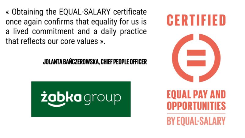 Vevey / Poznan, 14 October 2025 – The EQUAL-SALARY Foundation is pleased to announce that Żabka Group has obtained the Equal Pay and Opportunities, by EQUAL-SALARY certification, a symbol of excellence in terms of equality for employees of Żabka Polska and companies of Żabka Group in Poland. After successfully passing the statistical analysis of its salaries, Żabka Group. underwent an internal audit entrusted to PwC, proving that it practices equal pay and equal opportunities for women and men.